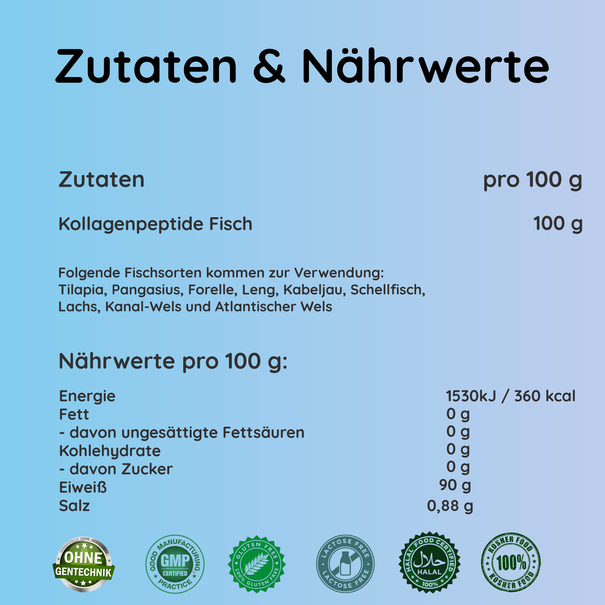 - Kollagenhydrolysat (Fisch) 100 g (10 g)